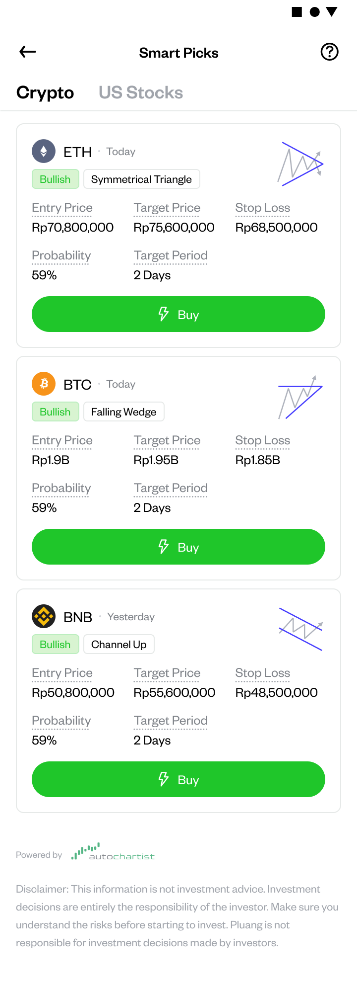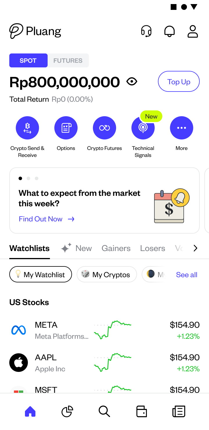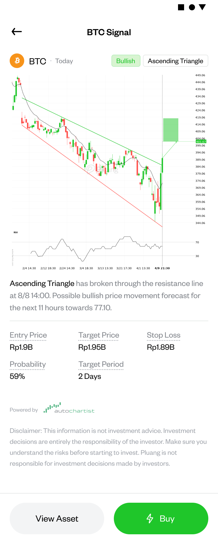 Saatnya trading jadi jauh lebih mudah dan lebih cuan. Kini Pluang menghadirkan Technical Signals, fitur otomatis yang langsung memberi kamu sinyal trading berbasis pola chart. Udah gak perlu ribet baca indikator atau analisis manual.