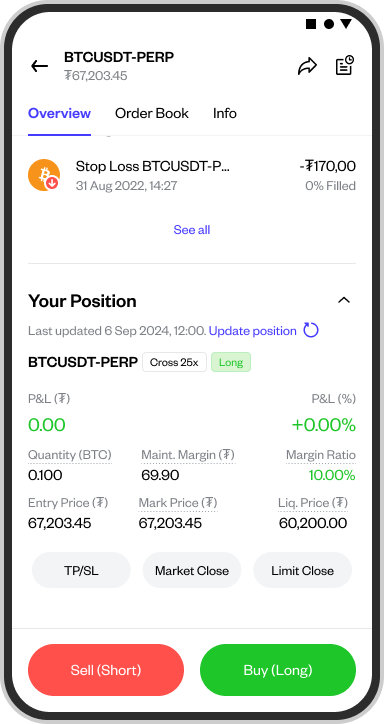 If you already have a Long position in one of the Crypto Futures contracts, opening a Short position for the same contract pair will only close the Long position by the amount of the Short position you opened. If you open a Short position that is larger than your current Long position, your Long position will be closed and a new Short position will be opened by the difference between the Short and Long positions.
