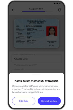 If, during identity verification, the system detects that the date of birth on your identity card does not meet the minimum age requirement, you will receive the following notification: