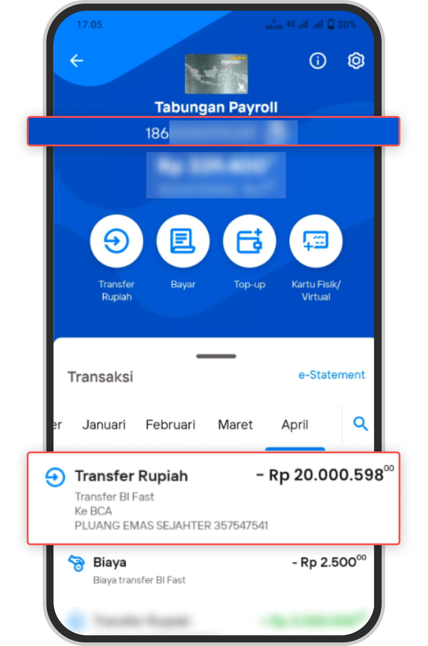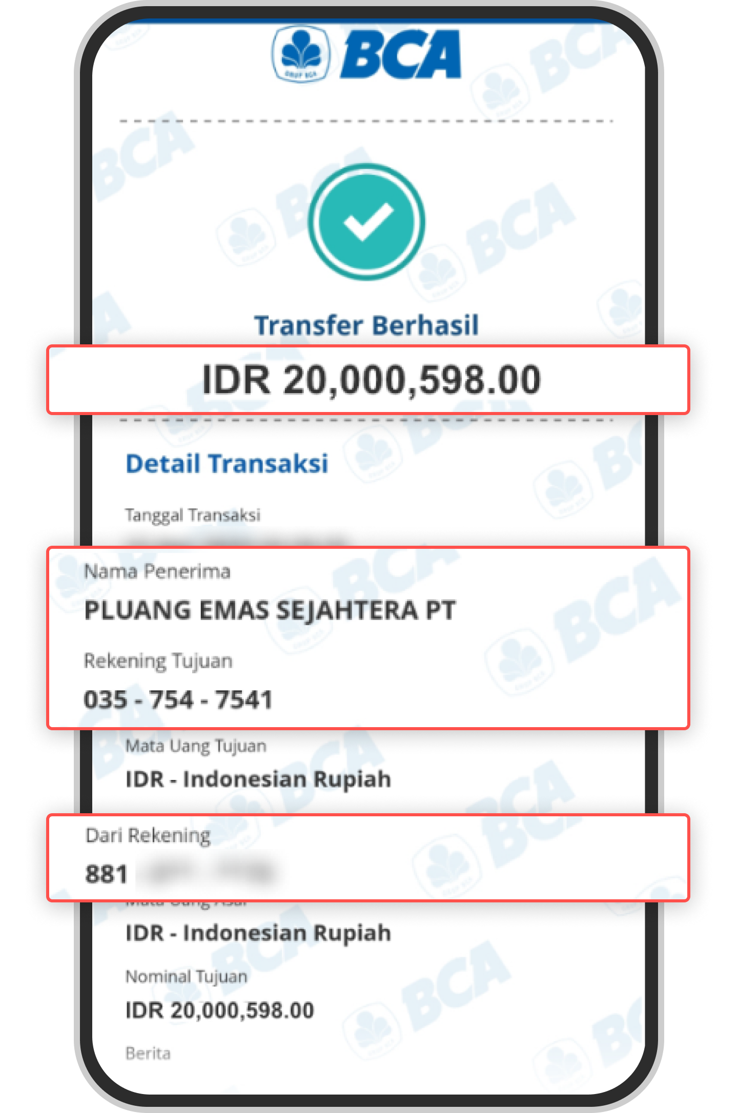 What is an example of proof of transfer that is suitable for payment confirmation? ClickBCA myBCA mBCA: Livin Mandiri: