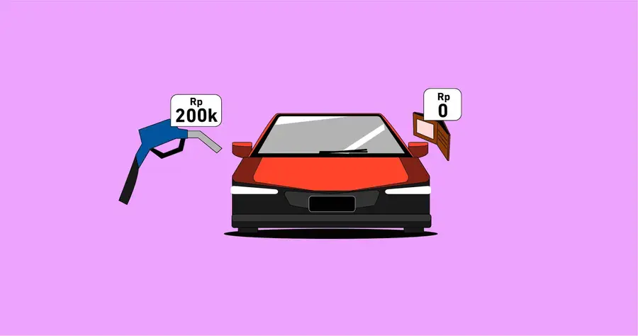 Kamu membuka dompet untuk membayar dan tidak ada uang tunai. Semua tabunganmu dan gaji terakhir kamu telah digunakan untuk membeli mobil. Kamu tidak memiliki arus kas bebas. Dua pilihan itu adalah kamu membayar menggunakan kartu kreditmu dan berutang (arus kas negatif) atau kamu berkemah di pompa bensin sampai gajimu berikutnya (arus kas positif) hilang dan kamu mengisi mobil.