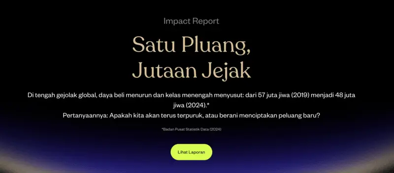“Di balik setiap angka dalam Impact Report ini, ada jutaan kisah #BukaPluang. Lebih dari 12 juta orang Indonesia yang telah memulai perjalanan investasinya bersama Pluang menjadi inspirasi kami untuk melanjutkan misi membangun kekayaan lintas generasi dan bersama-sama menciptakan masa depan finansial yang lebih tangguh dan inklusif.”