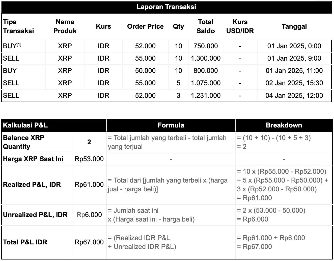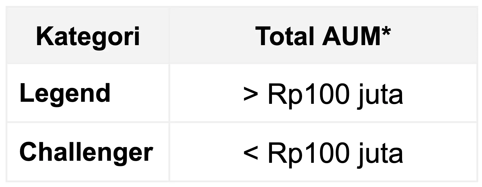 Contoh 1: Peserta A berada di peringkat #3 pada IDR P&L Kategori Legend, peringkat #1 pada IDR Trading Volume Kategori Legend, dan mencapai keuntungan sebesar RpY selama kompetisi.